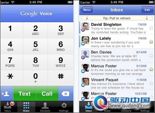 Google在去年时候推出Google Voice服务,经过一年的时间也在先前时候推出正式版本,而目前也终于开放在苹果App Store中上架,使用者可以自行下载安装,但现行服务依然仅现北美、加拿大地区,同时也需要具备一组Google Voice帐户。