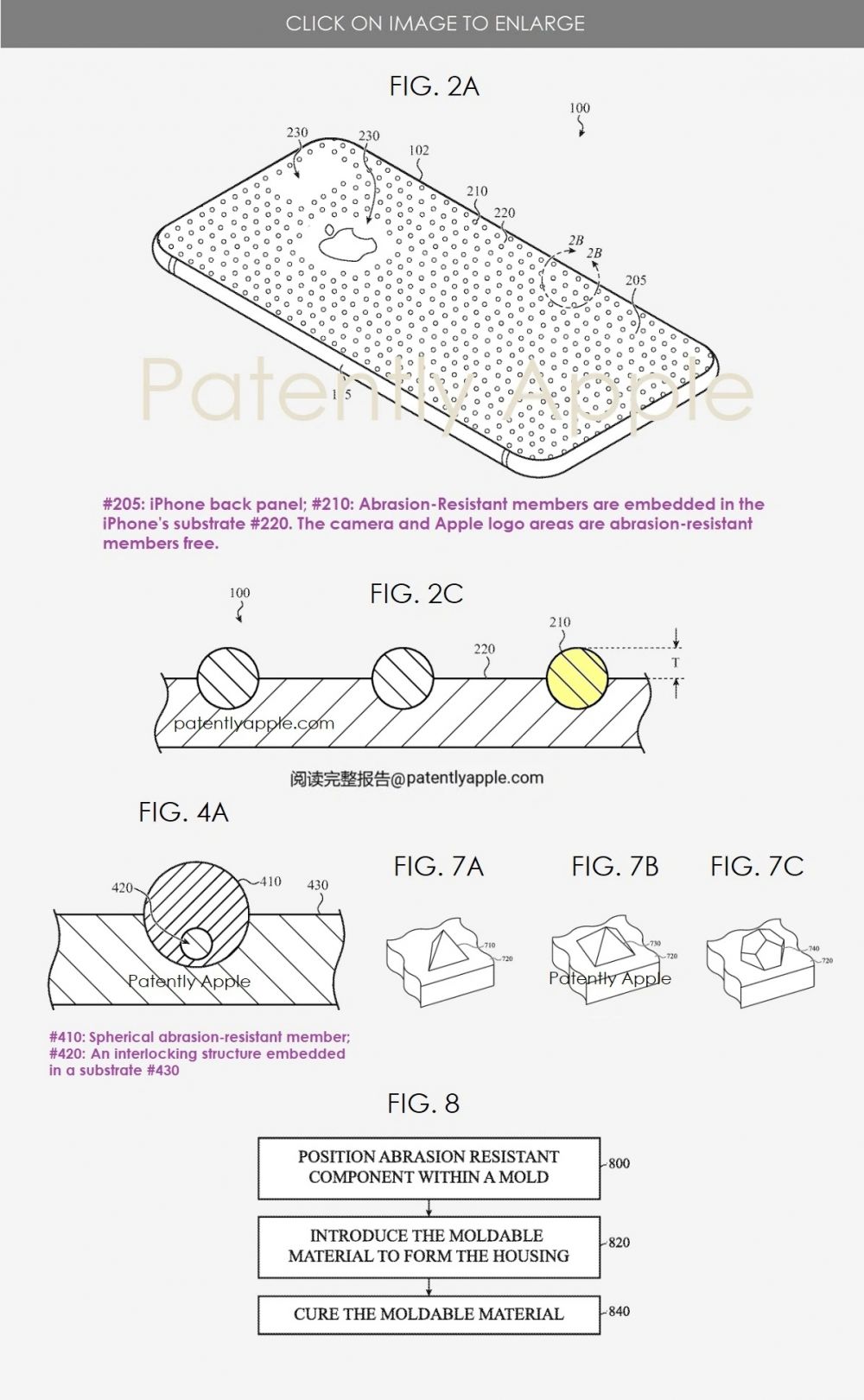 专利描述中指出,包括手持式手机、平板电脑和笔记本电脑等便携式电子设备在内,会接触各种表面,从而导致设备表面损坏或磨损。以此由金属或陶瓷形成的空间复合材料(Spatial Composites),基材中配有可模塑基质,相邻耐磨构件之间的平均距离在约 10 至 100 微米之间。