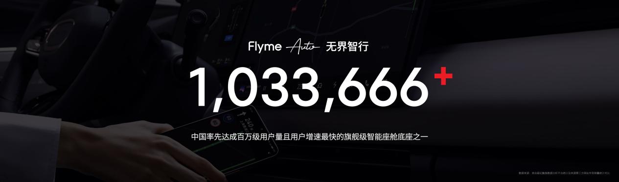 在新品发布会上,星纪魅族公布了 Flyme Auto 智能座舱系统的最新成绩——生态用户数率先突破百万,截至 5 月 13 日用户总量达到 1033666。