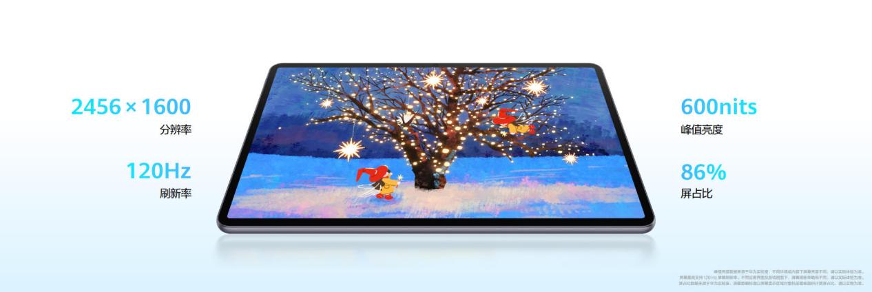 众所周知,好的护眼体验,离不开一块优秀屏幕的基础素质。华为MatePad 11.5配备了一块11.5英寸的高清全面屏,拥有86%的高屏占比、2456×1600高分辨率及256 PPI的高像素密度,细节呈现锐利细腻。600nits的峰值亮度保障了HDR内容的生动呈现,120Hz的高刷新率,则让系统动画与内容滚动无比顺滑,强大的屏幕素质,为顶级的护眼技术提供了施展的舞台。