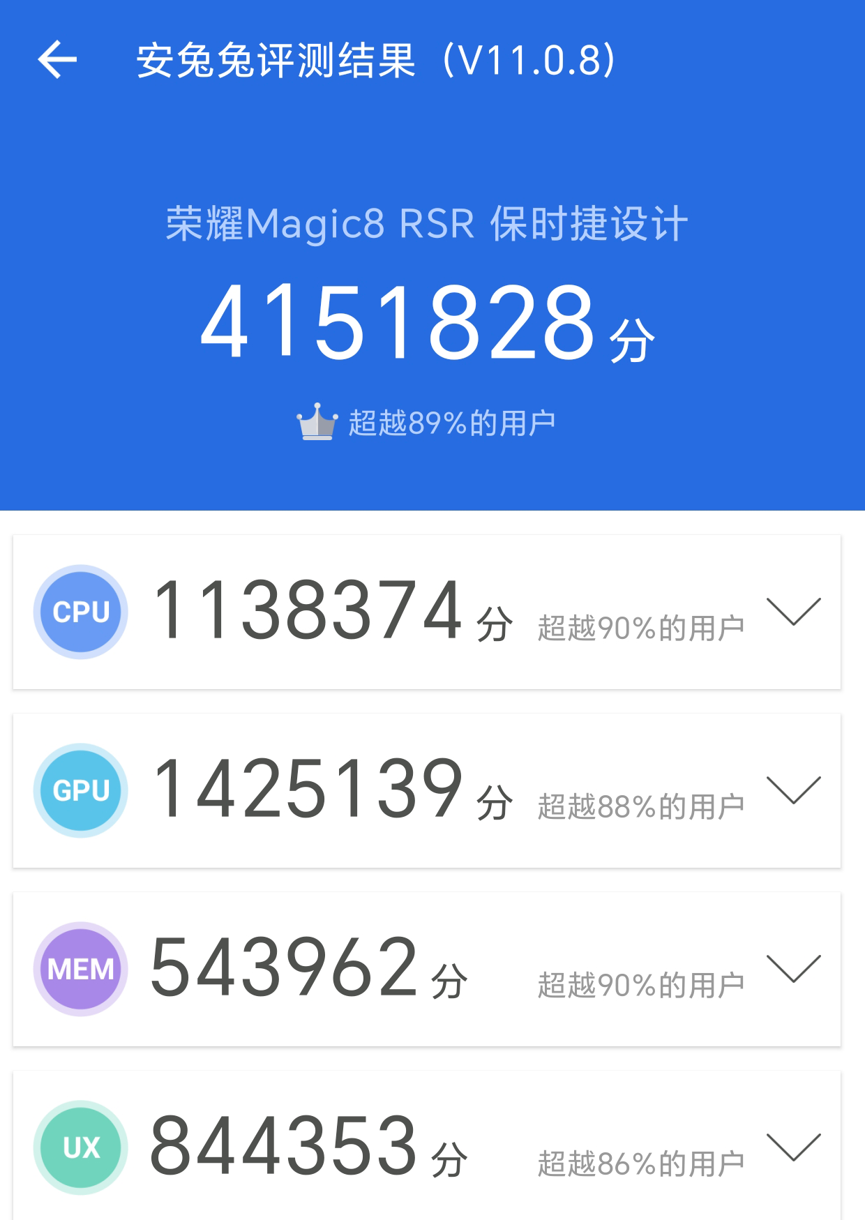 实测,荣耀Magic8 RSR保时捷设计安兔兔跑分超过415w,稳稳的第一梯队,性能释放水准超过苹果A18。