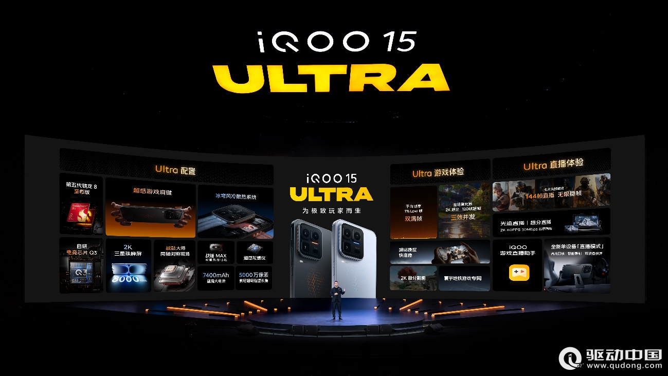 2026年2月4日,北京 —— “行业首款性能 Ultra”iQOO 15 Ultra正式发布,国补后到手价 4999 元起。该机为追求巅峰体验的玩家与创作者重构性能、操控、直播及美学四大核心维度,开辟“旗舰之上,以极致游戏性能为内核”的全新赛道。