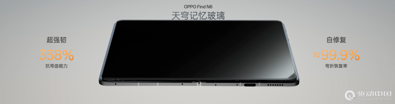 与天穹铰链形成完美协同的是 OPPO 全新研发的「天穹记忆玻璃」。针对传统柔性玻璃反复弯折后不可逆的形变难题,天穹记忆玻璃采用超坚固新型基材,至高可承受 5 公斤重压。通过深度化学强化工艺,让抗弯曲形变能力提升至传统柔性玻璃的 338%,弯折后可实现 99.9% 的形状自修复,如同记忆枕一般,展开后折痕可快速回弹淡化,成为屏幕久用平整的核心保障。