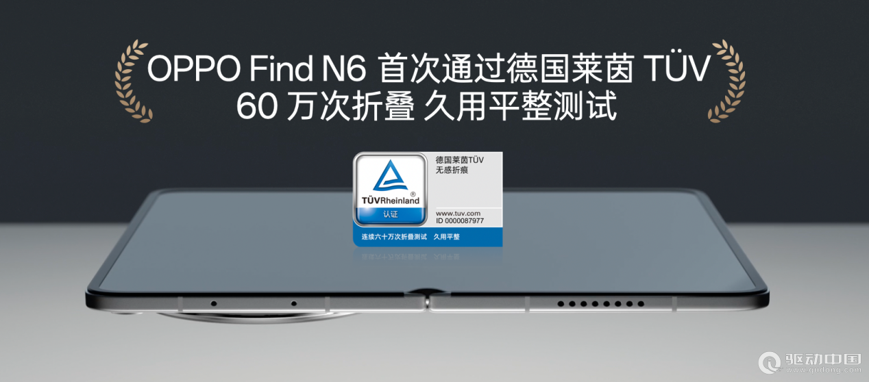 凭借这两大颠覆性技术,OPPO Find N6 成为全球首款通过德国莱茵 TÜV 无感折痕「连续 60 万次折叠测试 久用平整」认证的折叠旗舰,更在该机构的久用测试中,以远超行业常规水平的平整度表现,打破折叠屏平整测试历史纪录,成为德国莱茵 TÜV 实验室测试过的「全球最平整折叠手机」。