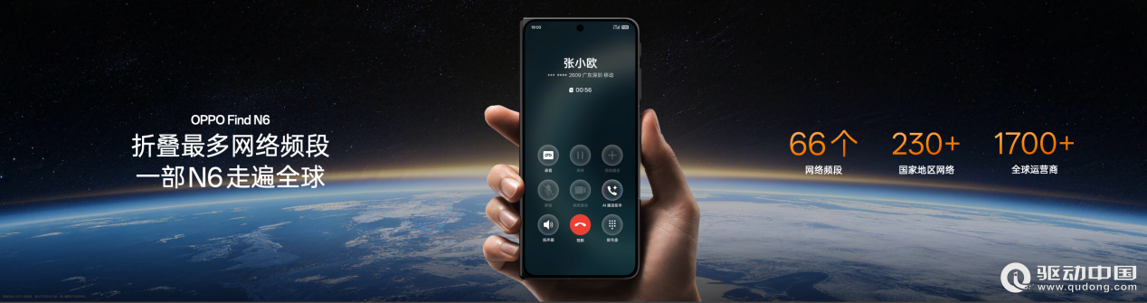 通信能力上,OPPO Find N6 搭载自研「山海通信增强芯片」,配合全新双屏寄生增强技术、自适应激励天线架构和行业独家分布式通信增强架构,让核心频段信号强度提升 100%;总计支持 66 个通信频段,覆盖全球 230 多个国家和地区、1700+ 运营商,是目前全球支持网络频段最多的折叠屏手机,真正实现「走遍全球,一部 N6 就够了」。