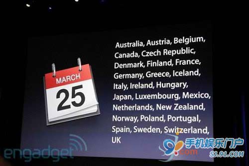 早前在3月初的特别媒体发布会上,苹果表示英国、加拿大、澳大利亚、日本和欧洲的多数国家将于3月25日开始销售iPad 2,而随后日本由于海啸和地震灾难,苹果宣布iPad 2在日本的上市时间推迟。