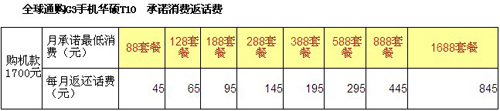 此次华硕与移动合作推出的套餐方案主要分为两种,一种是预存话费送手机,另一种是购买手机返还话费。其中最超值的方案是预存话费送手机,以18个月188套餐为例,用户只要在签月日期之内消费到协议话费金额 ,就可以仅用170元获得华硕T10智能手机,如选择24个月的188元套餐,即可0元拥有华硕T10手机。